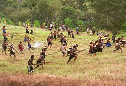 Na de brug over de baliem rivier is het nog een kort stukje lopen naar het festival
