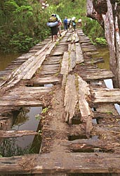 steken we veel over via bruggen waarbij de meeste planken doorgerot zijn. Het