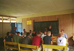 ontbijt vertrekken we om 8:20. In het klaslokaal erlangs zijn de kinderen al bezig