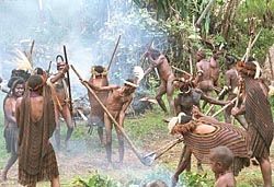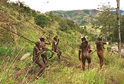 Met speren gewapend komen ze een schijnaanval op ons uitvoeren.