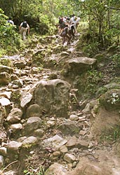 over een steil pad naar boven. Door de vele stenen is het pad goed te lopen,