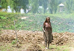 lopen tussen de aardappelveldjes door naar het dorp Jijiwa. Daar wordt eerst