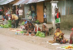 In volgeladen pickup truck (met dak op de laadbak) rijden we terug naar Wamena. Onderweg valt een stuk ijzer van het dak en komt op het hoofd van Piet en mijn oor terecht. 13:50 zijn we terug bij het hotel.