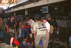 De bagage hebben we achtergelaten in het vliegtuig om niet te veel tijd te verliezen. In het hotel krijgen we een tandenborstel, wat wel zo gemakkelijk is als je geen toilettas bij je hebt.
