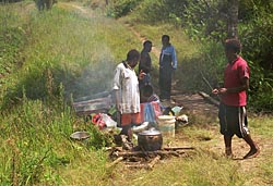 lunch eten we vandaag langs het pad. Er is passievrucht, heerlijk zoet en zeer