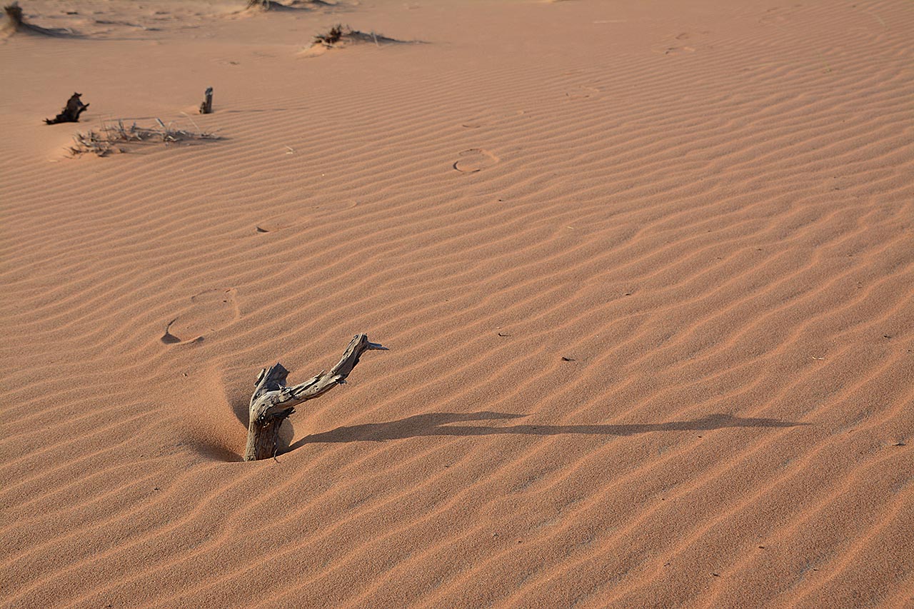 We verlaten de bewoonde wereld en rijden via een onverharde weg de woestijn in.
