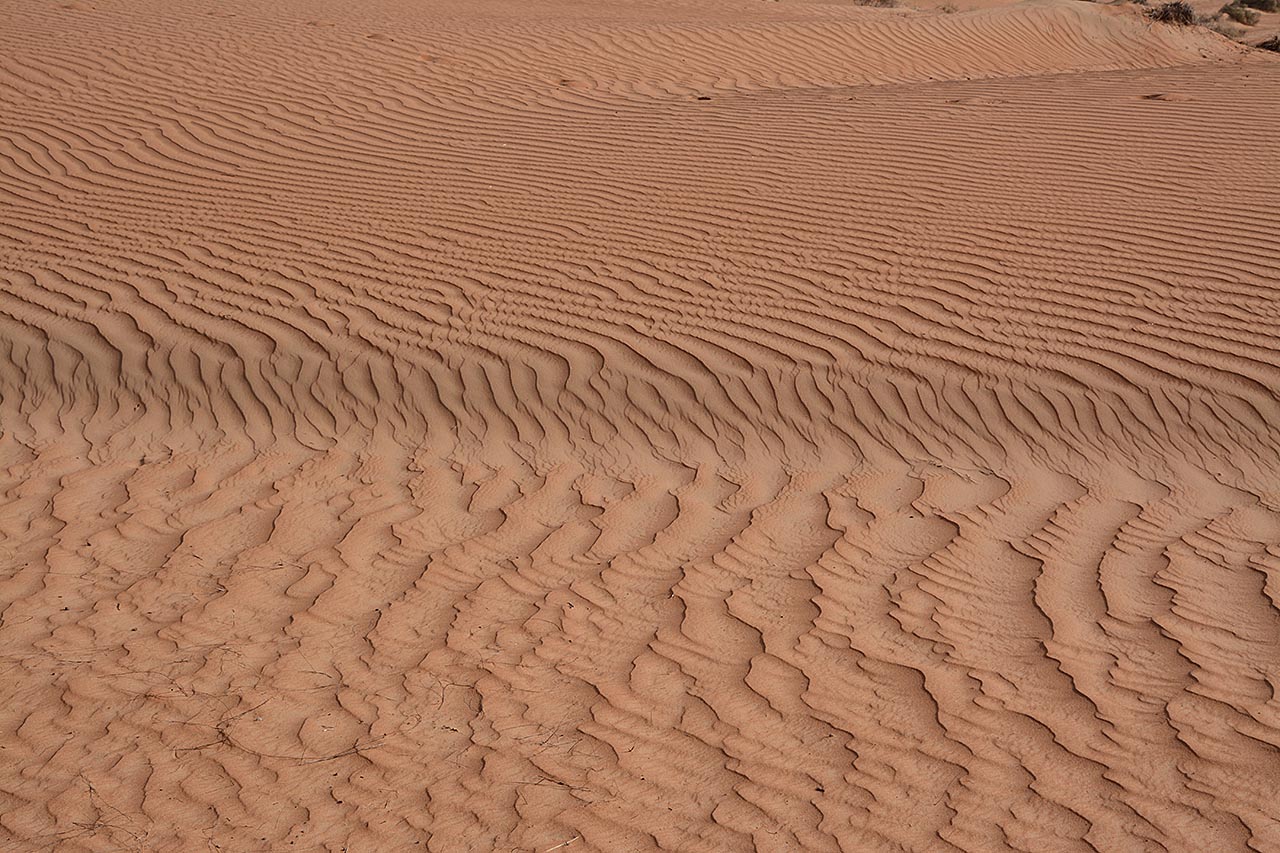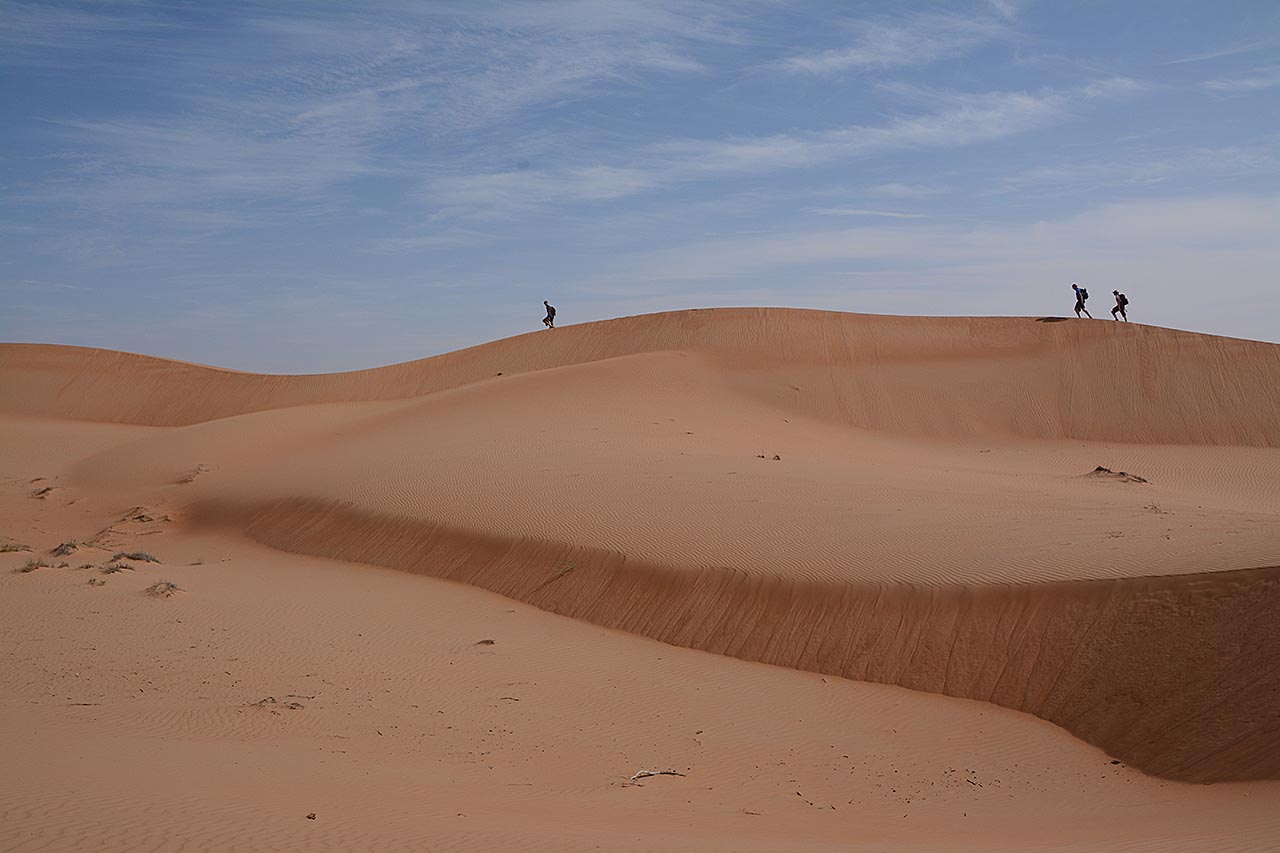zand zijn mooi te zien. Wel is het soms zwaar lopen in het losse zand.