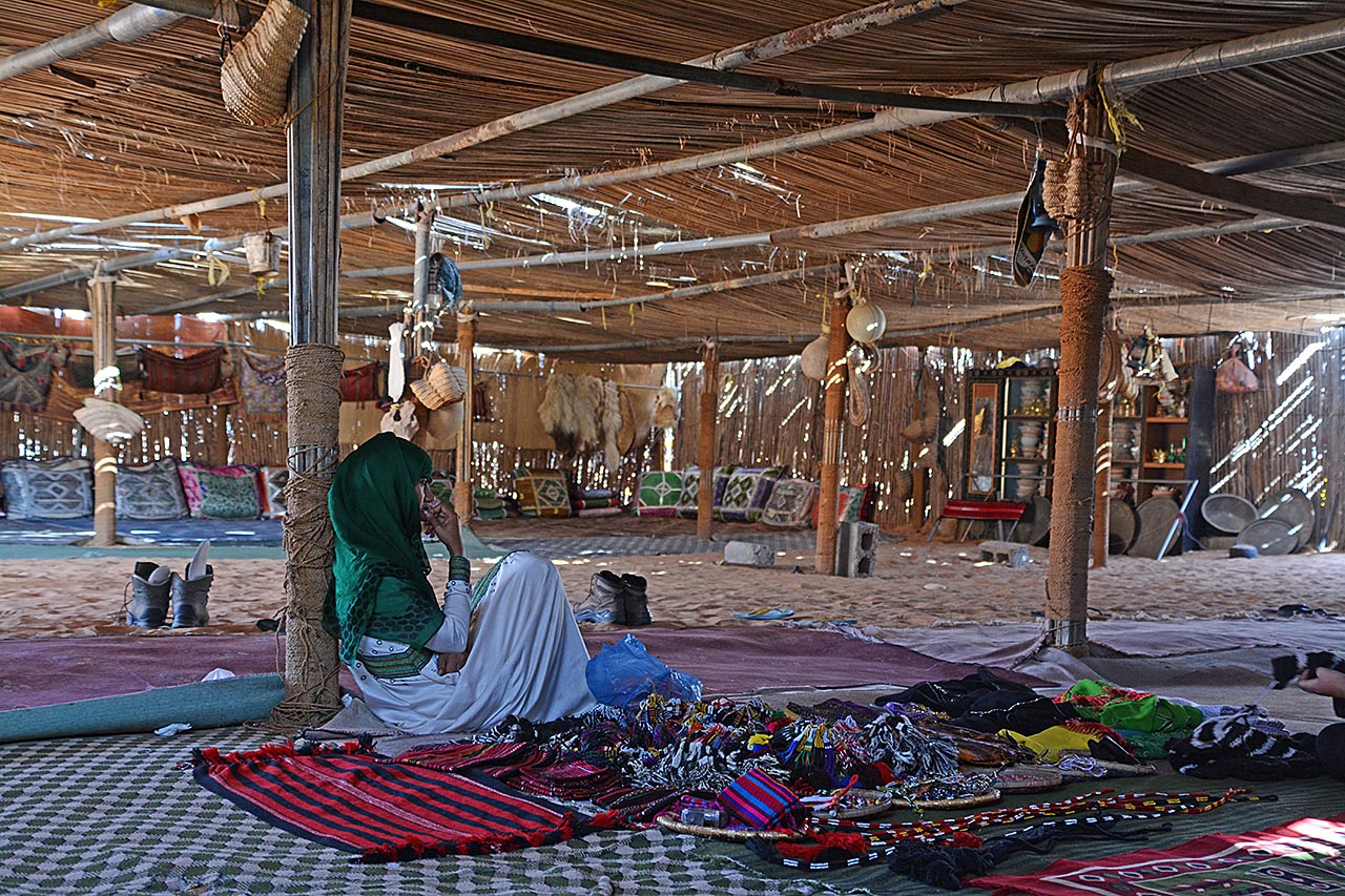 De rit gaat verder. We maken nog een stop bij een grote bedoeide tent. Hier krijgen