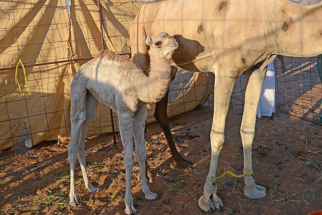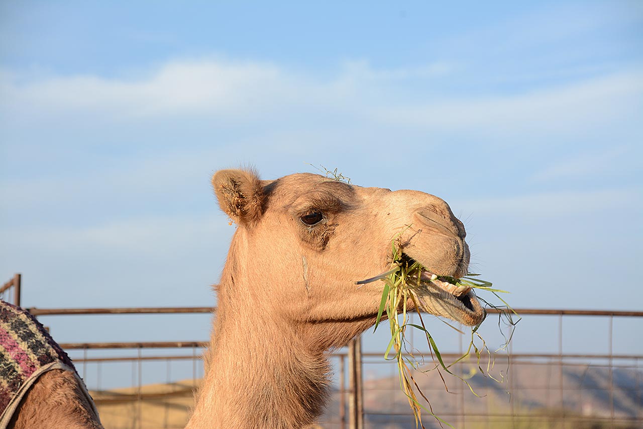 Vlakbij staan dromedarissen met 2 jongen. Als je er naar toe loopt mag je ook even