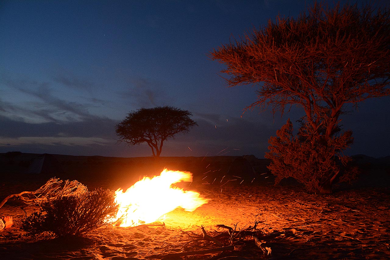 Vandaag is er ook weer een kampvuur. De chauffeurs hebben de omgeving afgestruind naar dood