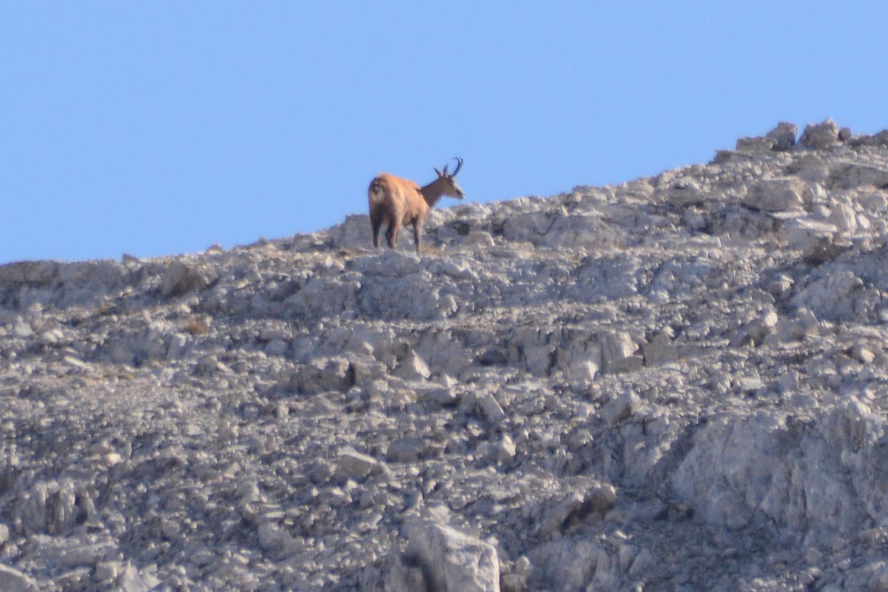 Als we een flink stuk richting het hoogste punt zijn is er een steenbok in de verte op een berg te zien.