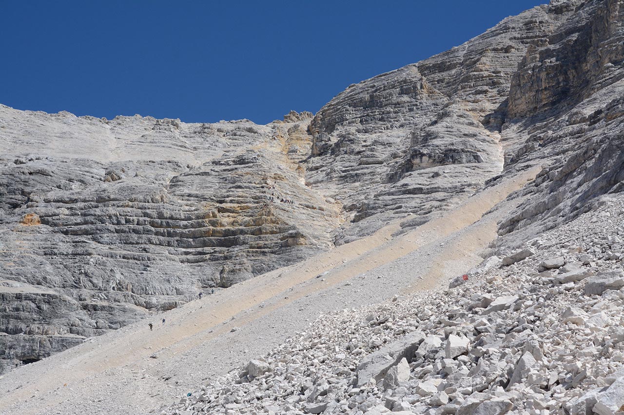 Na de rotsen begint een lastigere puinhelling, al valt het dan nog mee. Wel is het al flink heet in de zon.